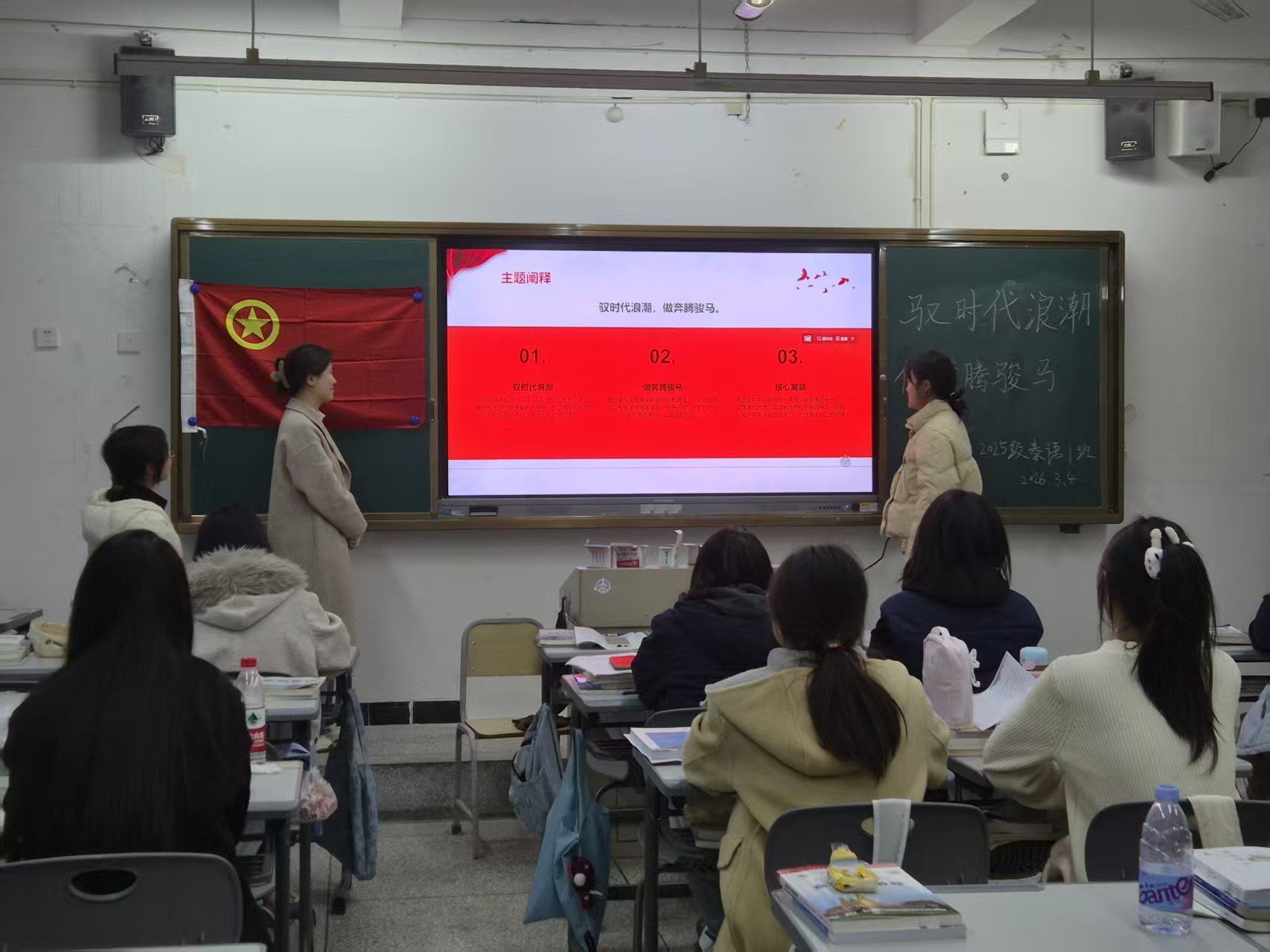 活动期间,各团支部结合2026马年时代背景,聚焦“AI智能跃迁”“科技自立自强”等前沿热点,通过主题宣讲、PPT展示、交流研讨等多样化形式,带领团员青年回顾上学期班级建设与个人成长的点滴收获,深入剖析不足与改进方向,将个人需求与时代发展紧密结合,科学规划新学期目标,明确工作要求。各团支部结合专业特色设计内容,创新活动形式,认真组织实施,引导团员广泛投入到活动中,踊跃发言,进一步凝聚青年力量,切实提升活动的吸引力与实效性,确保全体团员深度参与、学有所获。