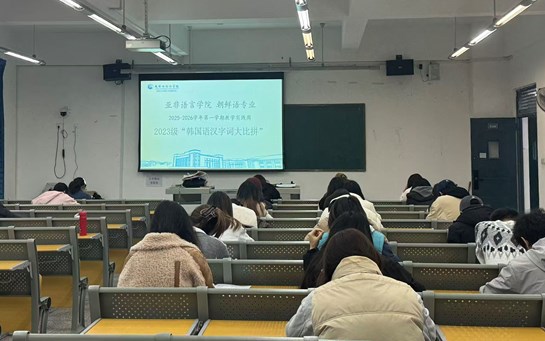 为夯实专业基础、锤炼韩文书写技能,充分展现朝鲜语专业新生的学习风貌与语言素养,11月10日上午9时,“墨韵韩字·初写韩文展锋芒”韩文书写比赛在第二教学区C509、C513教室顺利举办,2025级朝鲜语专业全体学生参与。比赛现场秩序井然,同学们坐姿端正、神情专注,以严谨的态度投入书写。大家握笔规范、运笔流畅,在洁白的稿纸...