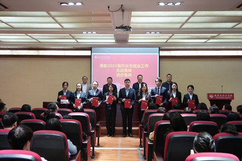副校长沈光临宣读了《成都外国语学院关于表彰2024届毕业生就业工作先进集体、进步集体与先进个人的决定》,我院获先进集体,薛霞老师获先进个人。