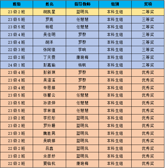 其中本科组二等奖1项、三等奖7项、优秀奖13项;蓝明凤、任慧慧、罗黎、李响、康艳梅、杨帆等6位教师获“优秀指导教师奖”;我校荣获“优秀组织奖”。