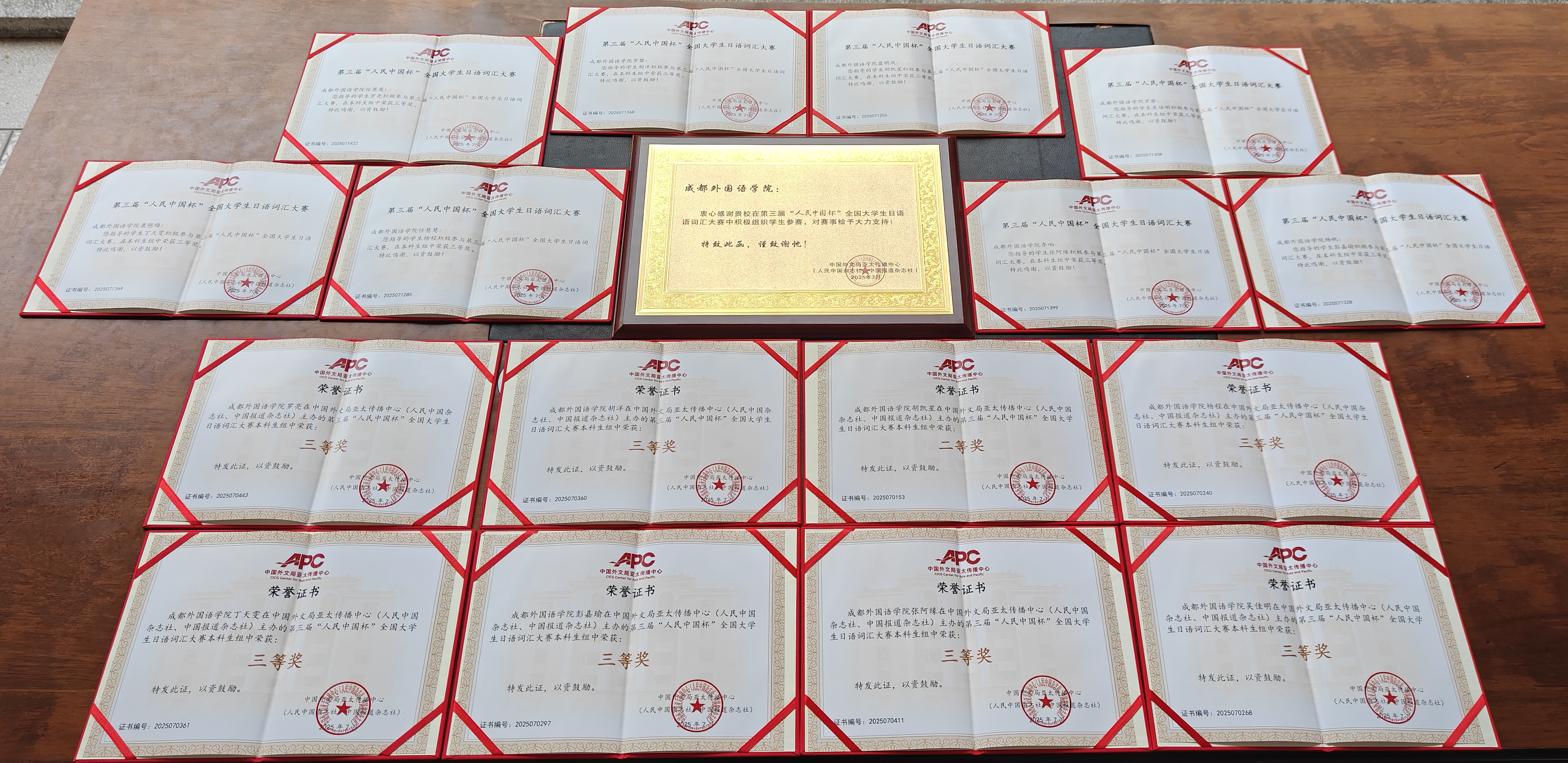近日,由中国外文局亚太传播中心(人民中国杂志社、中国报道杂志社)主办的第三届“人民中国杯”全国大学生日语词汇大赛圆满落幕。亚非语言学院日语专业师生积极参与、表现出色,共斩获28项荣誉。