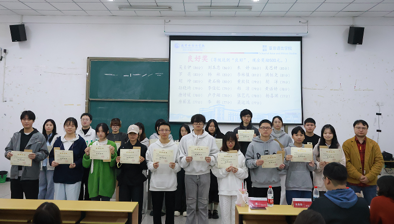 大会伊始,日语专业甘果老师为本次日语专四考试表现突出的同学颁奖:共设多名“进步奖”、“良好奖”和“优秀奖”。本次2023级日语专四考试的亮眼成绩,不仅是学生刻苦学习的成果,更印证了我院日语专业在课程体系优化、教学方法创新等人才培养工作上的实效——通过将专业证书考核融入日常教学,引导学生夯实日语语言基础、提升综合应用能力,助力学生实现“学业达标”与“技能认证”的双重突破。