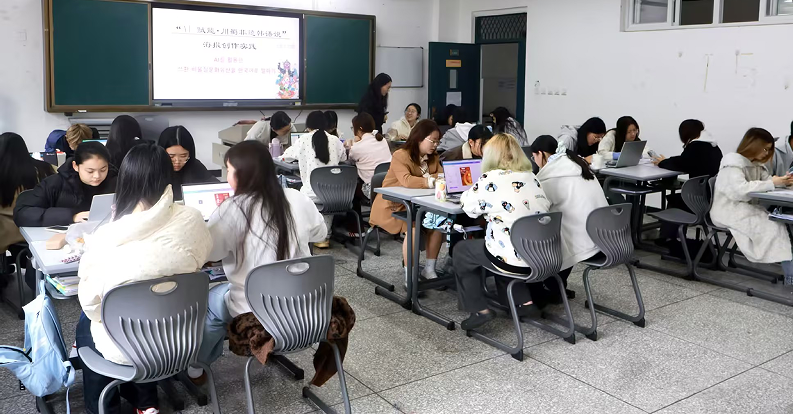 2025年11月11日,我院“AI 赋能川蜀非遗朝鲜语说”海报制作活动于第二教学区C501教室顺利开展,2024级朝鲜语专业全体学生参加。