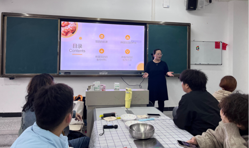 活动伊始,主讲教师细致讲解饭团的历史渊源——其起源于我国先秦时期,汉至隋唐制作工艺不断细化,后在文化交流中持续发展演变。