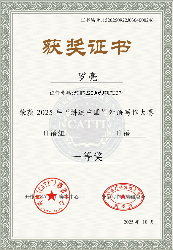 亚非语言学院日语专业学子在2025年“讲述中国”外语写作大赛中斩获佳绩