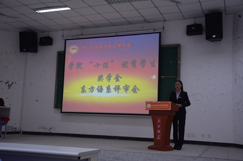 此次评审会采用综合测评+现场得分的评审方式,最终2015级越南语1班的陈娇凭借出彩的表现获得我系最终的十佳人选。