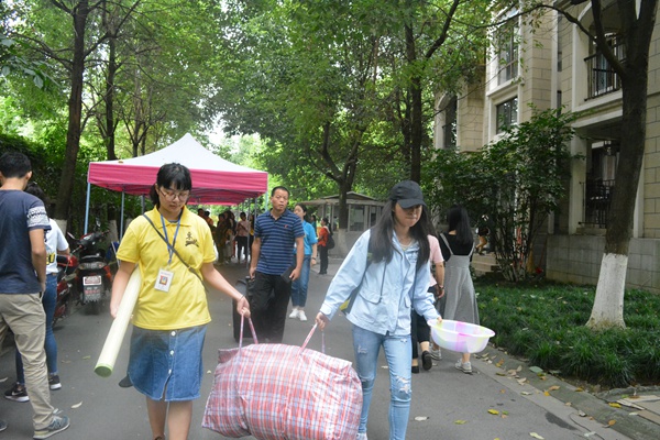 系部团学干事更是成立了“迎新生志愿服务队”,用学长学姐们的热情、志愿者们的爱心去迎接每一位新同学的到来,从报名处到注册处,再到寝室,处处涌动着他们忙碌的身影,拉皮箱、搬被褥、给新生介绍学院及系部情况,即便顶着炎炎烈日,也从未喊苦喊累,并用一张张亲切的笑脸表达出对新生学子们最热烈的欢迎。