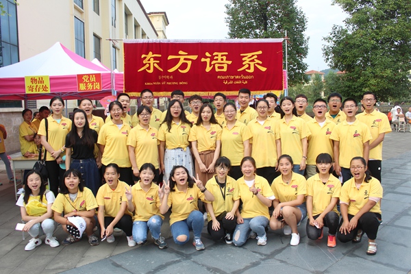 12日上午,已结束报到的2017级新同学,被学长学姐们的热情所感染,积极投入到了迎新志愿服务中。他们身穿黄色系服,佩戴着新生志愿者红色徽章,成为了迎新活动中一道亮丽的风景线。在迎新志愿服务工作中,新同学们深入了解到了学院与系部的相关内容,也更加融入了东方语系这个大家庭,加深了对系部的归属感。
