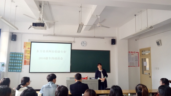 专四备考工作是阿拉伯语专业教学工作的重中之重,通过本次考前动员会,有助于2016级学生以积极的心态和科学的方法面对即将到来的四级考试。祝他们在考试中取得好成绩!