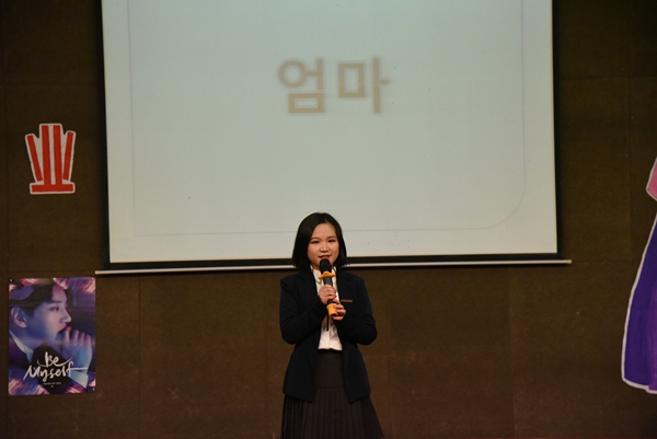 最后,朝鲜语外教金恩周老师对此次大赛做了总结发言,她首先肯定了所有参赛选手的表现,紧接着,她用自己的经历告诉同学们要多练习,不要轻易放弃。鼓励同学们在平时的练习中多锻炼说的能力,不断提升口语水平及个人素质。