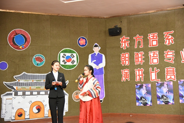 我系朝鲜语专业演讲比赛于11月27日晚7:00在一教C201举行。本次比赛由朝鲜语专业大二学生参加,展现了朝鲜语学生的专业风采,也为大一朝鲜语学生做出了榜样。