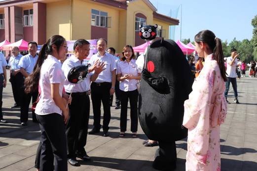 我系本次以“熊本熊”为主题布置迎新大本营,现场布置了熊本熊展板、人偶、气球等一系列相关物品,洋溢着日语系独有的热情。迎新展板详细地介绍了我系概况、教师相关情况、校友风采及我系国际交流项目,让新生及家长能直观地了解日语系。