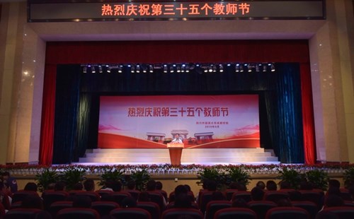 庆祝新中国七十华诞,弘扬新时代尊师风尚。9月9日下午,学校在观澜堂热烈举行庆祝第35个教师节大会。学校领导、全体教职工和学生代表等参加了大会。