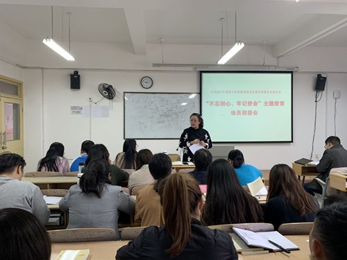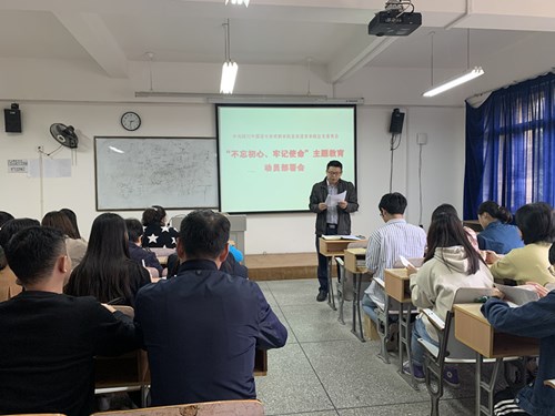 学院党总支书记王林同志传达了学校党委对全校“不忘初心、牢记使命”主题教育会议精神进行了传达,对主题教育实施方案、近期任务清单等进行了具体落实。在动员部署会上,王林强调:一是开展这次主题教育,正当其时,势所必需,是推进新时代党的建设的迫切需要。二是把握目标要求,聚焦重点任务。主题教育的根本任务是深入学习贯彻习近平新时代中国特色社会主义思想;总要求是“十二字”:守初心、担使命、找差距、抓落实;目标就是“五句话”:理论学习有收获,思想政治受洗礼,干事创业敢担当,为民服务解难题,清正廉洁作表率;还要坚持“四个贯穿始终”,即把学习教育、调查研究、检视问题、整改落实贯彻主题教育全过程。