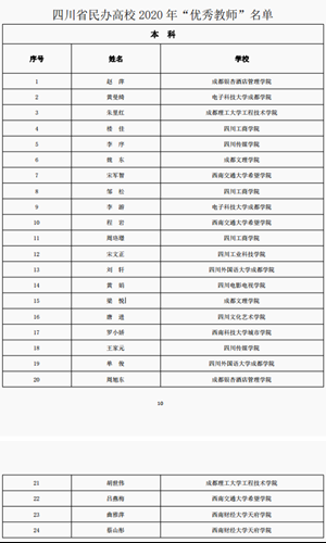 院长刘轩博士获得四川省民办高校2020“优秀教师”