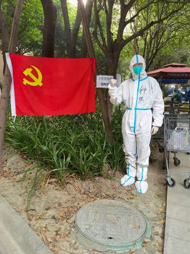 在成都静态管理期间,共产党员总是走在最前面的。我院分党委书记钟伟同志、院长刘轩博士、院长助理田敏老师等多名教工党员第一时间站出来,向社区报备参与到社区的防疫志愿服务工作当中,卡点执勤、运送物质、开展援助,在社区里充分发挥先锋模范作用。