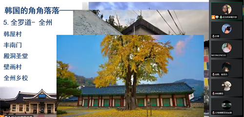 9月15日上午9点,我院朝鲜语专业教师田玉老师进行了一场以朝鲜语专业2022级新生为对象的韩国文化讲座。讲座从自然、人文的角度,对韩国的地理环境、行政区域等进行详细介绍,并对首尔市、江原道、釜山市、济州岛、全州市等地区的自然、人文景观以及风土人情进行讲解。旨在通过此讲座帮助学生们更好地认识、了解韩国,引起其对韩语学习的兴趣。
