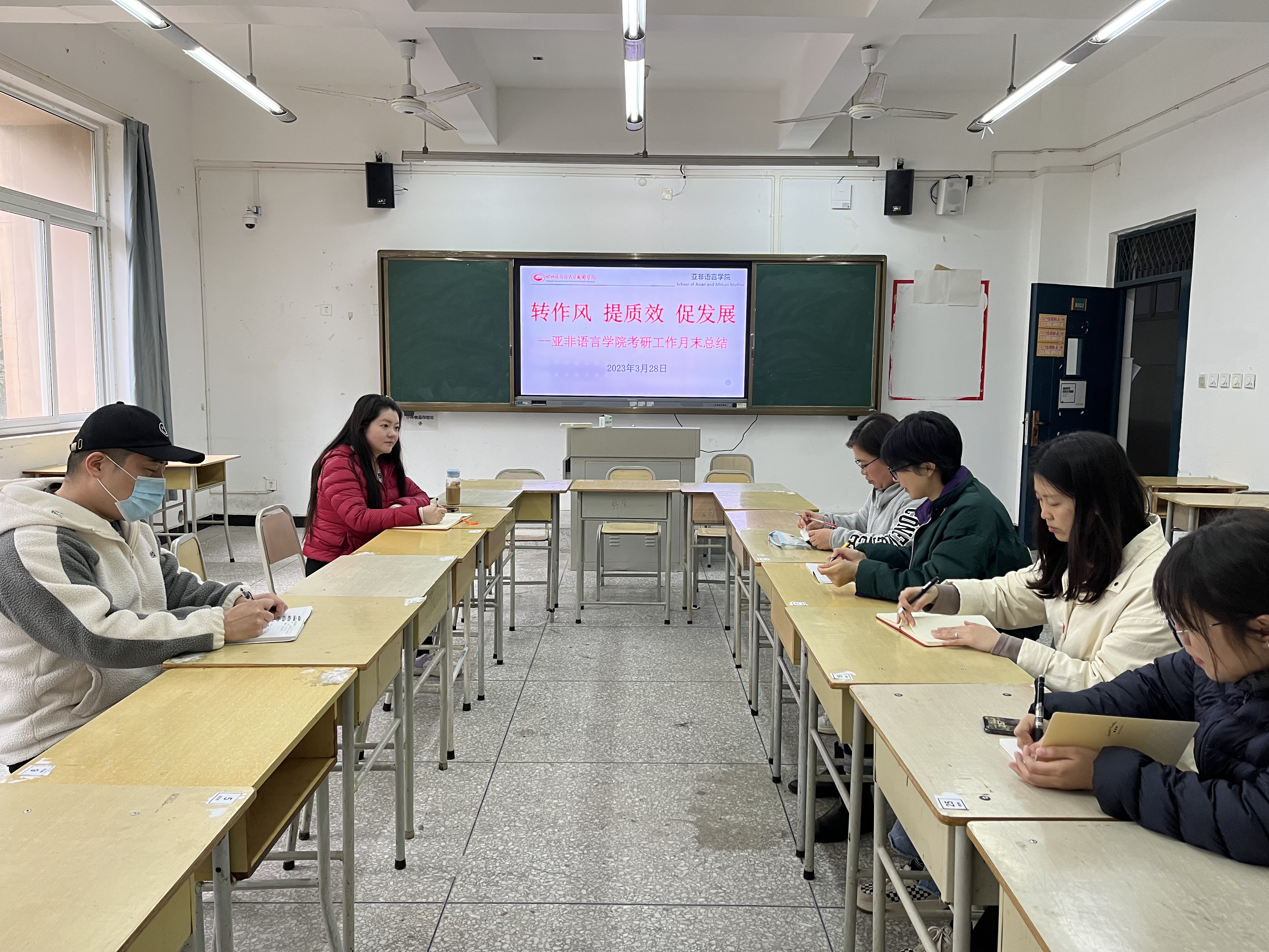 2023年3月28日下午三点,我院考研工作小组在二教B323教室召开“转作风 提质效 促发展”月末工作总结会。会议由学院考研工作负责人马丽玲老师主持,我院教学事务办公室主任吴娅蕾副教授及各专业考研负责教师参加会议。