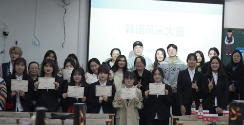 为丰富同学们的课余生活,发扬我院朝鲜语专业特色。我院于3月29日晚19:00在第二教学区。院教学事务办公室主任吴娅蕾副教授出席了本次比赛。本次比赛由朝鲜语专业教师冯旭彤老师、张艺老师、潘曰胜老师、赵莹老师和蒲昭帆老师担任评委。