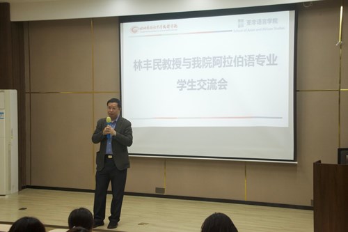 晚上,林丰民教授在南湖书院会议室为我院阿拉伯语专业全体师生开展了一场题为《阿拉伯语与阿拉伯语学习》的专题讲座。讲座中,林教授向大家介绍了古代阿拉伯国家的社会民俗,针对阿拉伯语的应用前景和相关人才供需状况进行了分析,同时分享了自己语言学习的宝贵经验,介绍了如何提高学习兴趣、如何比较研究中阿文化。讲座过程,林教授融入自我经历与民俗小故事,时而诙谐幽默,时而侃侃而谈,以一种快乐和谐的方式向大家展示了他多年来对阿拉伯语的理解。讲座结束后,林教授与现场同学积极互动,同学们踊跃提问,林教室针对同学们提出的问题予以细致解答。